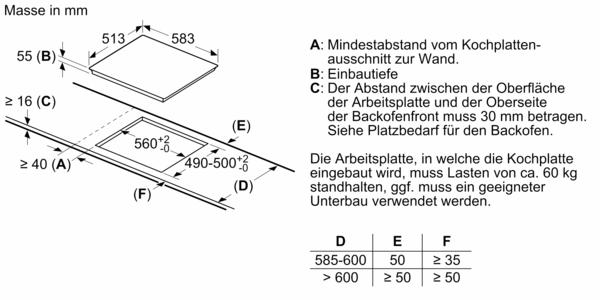 Einbaubreite Min.: 560 mm