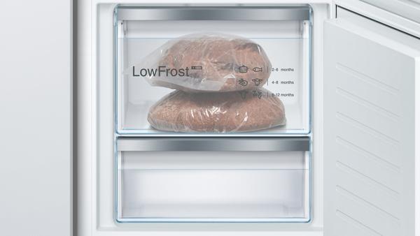 Die Einbau Kühl-Gefrier-Kombination mit VitaFresh pro: dank optimaler Lagerbedingungen bleiben Lebensmittel vitaminreich und bis zu 3 Mal länger frisch.