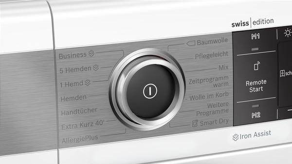Ein Tastendruck und der Stapel mit der Bügelwäsche schrumpft. Iron Assist glättet getrocknete Wäsche mit natürlichem Wasserdampf und reduziert so Ihren Bügelaufwand. Sie werden feststellen, dass Sie einige Teile gar nicht mehr bügeln müssen. Perfekt für Sakkos, Oberhemden und sogar Anzüge.