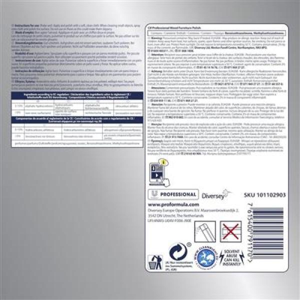 Die einzigartige Formulierung von Cif Professional Möbelpolitur reinigt, pflegt und schützt Holzmöbel und –flächen.