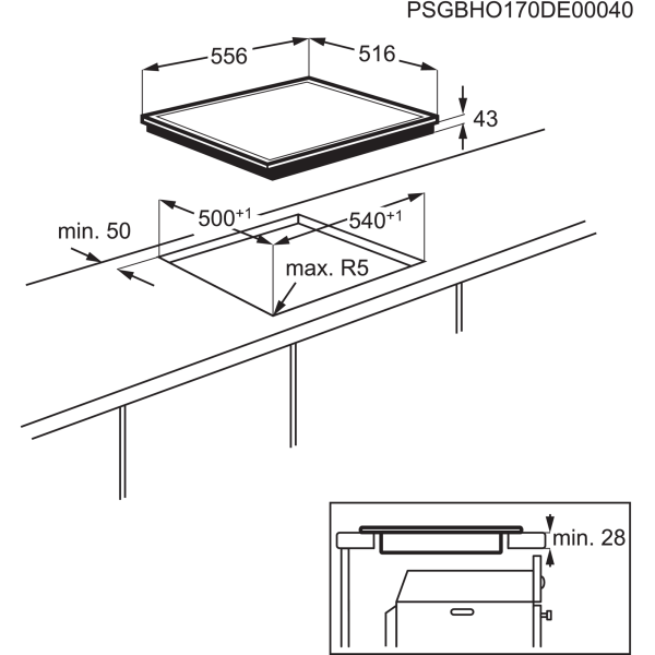 54 cm Ausschnittbreite vereinfacht den Einbau über einem SMS-Unterbauschrank