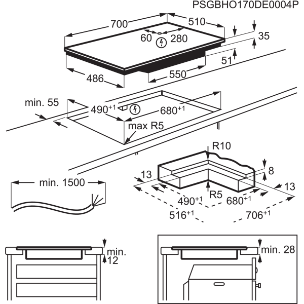 Kochfeld-Bedienelemente. Einfach antippen und sliden.