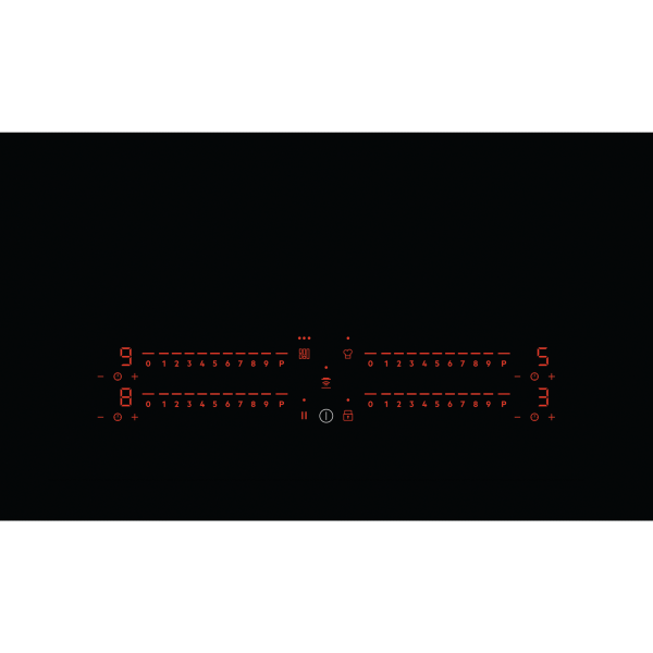 Die Bedienelemente und Zonen des stilvollen schwarzen Pure-Kochfeldes sind nur sichtbar, wenn Sie sie brauchen.