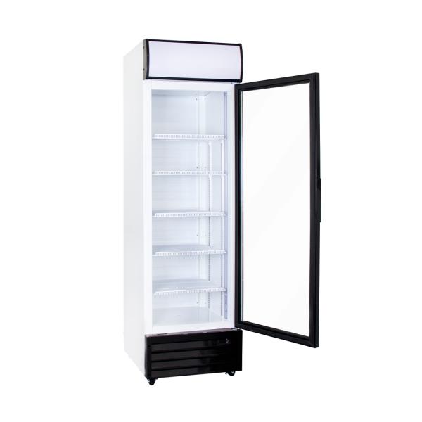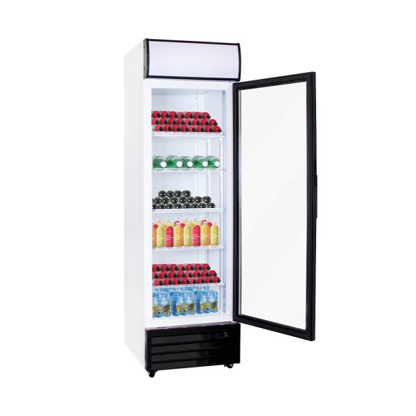 Dank der Glastür haben Ihre Kunden freie Sicht auf die dargebotenen Getränke. Dadurch eignet sich der Kühlschrank besonders für Hotels, Restaurants, Take Away, Vereinslokale und Ähnliches. Stellen Sie die Temperatur entsprechend Ihren Bedürfnissen zwischen 0 und 18°C ein.