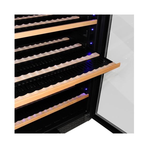 Durch die edle Glastüre und die stimmungsvolle LED-Innenbeleuchtung ist dieser Weinklimaschrank der ideale Blickfang für jeden Weinliebhaber.