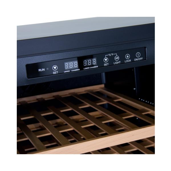 Die obere Temperaturzone erreicht Temperaturen von 5 bis 10 °C, während die Untere von 10 - 18 °C eingestellt werden kann.