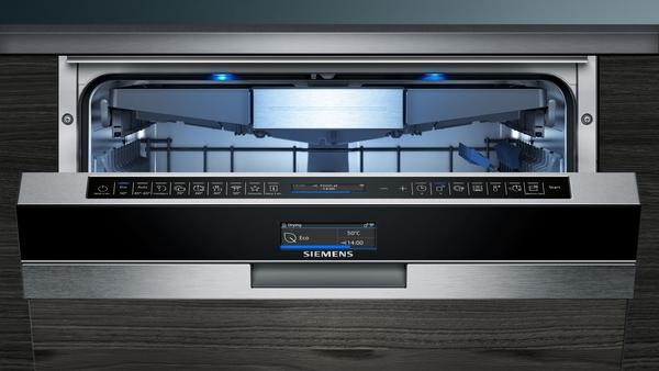 Wenn Sie die Tür Ihres Geschirrspülers öffnen, erwartet Sie ein leuchtendes Blau. Raffiniert angebrachte LEDs im oberen Bereich des Innenraums schalten sich automatisch ein, wenn Sie die Tür öffnen, und wieder aus, wenn Sie sie schliessen.