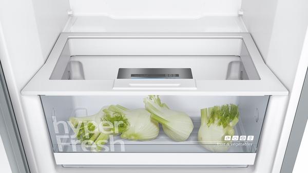 In der hyperFresh-Schublade haben Früchte und Gemüse mehr Platz und die richtige Luftfeuchtigkeit. So bleibt alles knackig und lecker – und das ist nicht nur gut fürs Aroma, sondern auch für Vitamine und Nährstoffe.