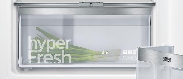coolEfficiency Einbau-Kühlschrank mit hyperFresh plus Box für bis zu 2 mal längere Frische bei Obst und Gemüse und flexiblem varioShelf.