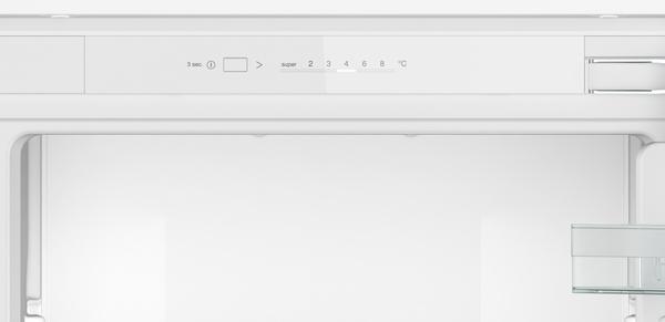 Mit der Taste superCooling werden die Temperaturen im Kühlraum schnell auf +2 °C gesenkt. Das verhindert beim Einlagern von wärmeren Lebensmitteln in den Kühlraum einen unerwünschten Temperaturanstieg bei Ihren bereits gut gekühlten Lebensmitteln.