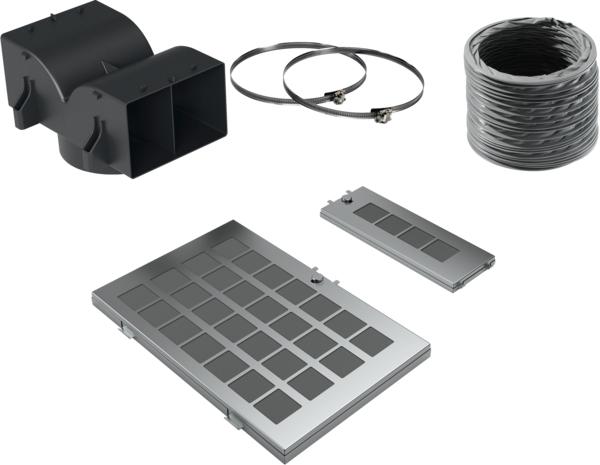 Bestehend aus Umluftweiche, mehrfach regenerierbaren Aktivkohlefilter (2 Stück), flex. Schlauch und Befestigungsmaterial