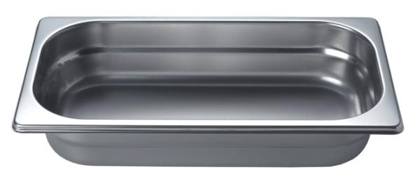 Garbehälter aus pflegeleichtem Chromstahl. Zum Garen von Fleisch und Gemüse in Flüssigkeiten, im eigenen Saft oder als Auffangschale.