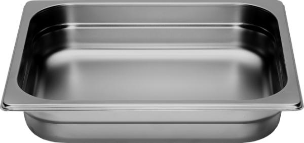 Garbehälter aus pflegeleichtem Chromstahl. Zum Garen von Fleisch und Gemüse in Flüssigkeiten, im eigenen Saft oder als Auffangschale. Der 1/2 Garbehälter vereinfacht das Handling beim Nachbeladen enorm.
